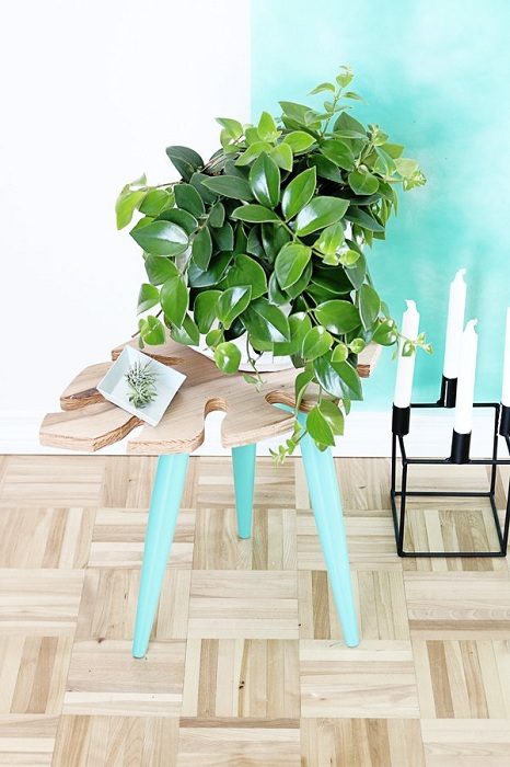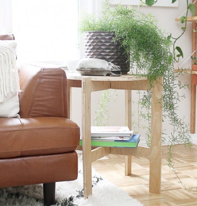 Симпатичный DIY столик из дерева отлично дополняет интерьер комнаты.