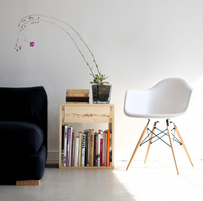 Столик, ящичек и книжная полочка — три в одном. Универсальное сочетание позволяет максимально эффективно использовать пространство комнаты.