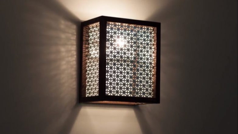 С помощью декоративного металлического листа и простых деревянных планок можно сделать стильный настенный светильник, который станет настоящим украшением комнаты.