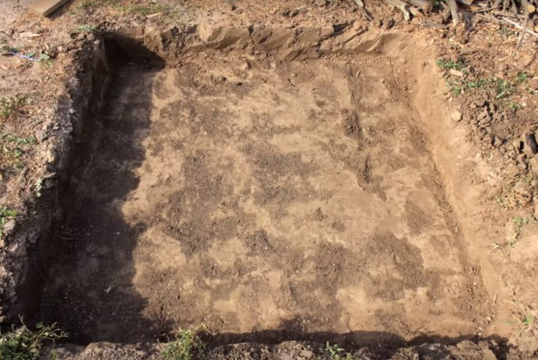 Выкопайте яму шириной 1,2 м на 1,2 м и глубиной 20 см.