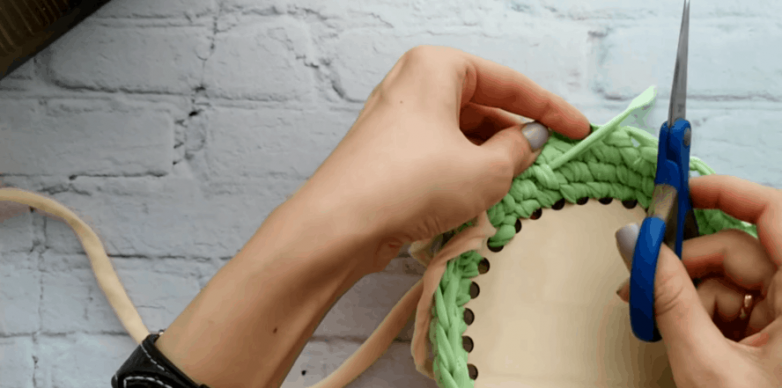 Прятать нить можно сразу или по окончании вязания. Для этого продеваем обрезанный конец сквозь иглу, проводим ее сквозь стенки нескольких столбиков в свободном порядке, а затем обрезаем. Так же можно поступить и с нитью в начале вязания. Другой способ — сразу ввязать ее в работу.