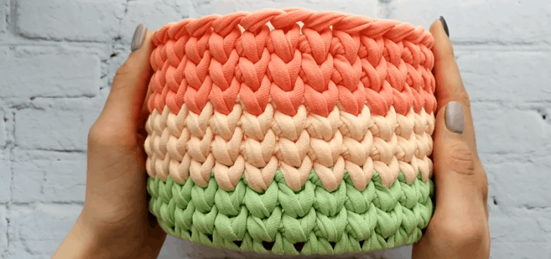 Вяжем корзинку из плотных синтетических ниток