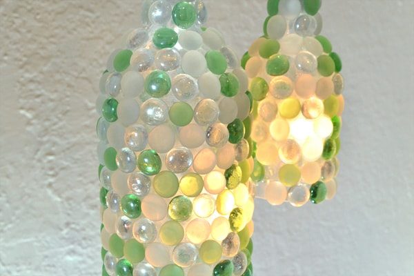 Обклеив стеклянную баночку разноцветными полусферами, легко сможете сделать красивый светильник для дома.