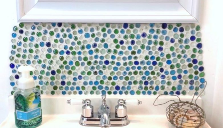 Разноцветными стеклянными полусферами можно необычно оформить стену в ванной комнате.
