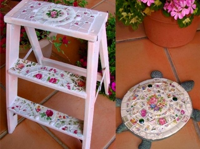 Если вы хотите сделать свой дом, а также вещи в нём оригинальными и неповторимыми – это ваш вариант! И смотрится красиво и необычно, и материал достается фактически даром – просто собираете разбитые чашки, креманки и блюдца, а также зеркала, запасаетесь клеём, терпением и творите!
