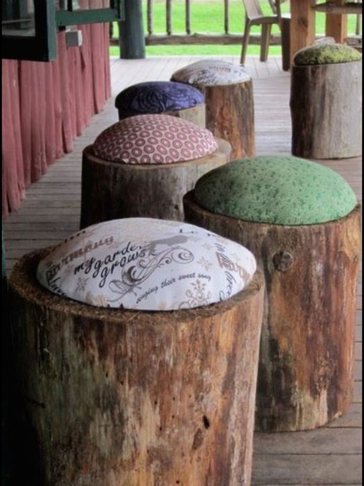 2. Небольшие табуретки из пеньков