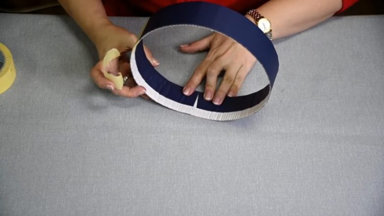 Основой для работы является гофрокартон — из него был вырезана длинная узкая полоса, свернутая и склеенная в круг (все размеры и шаблоны смотрите в видео ниже).