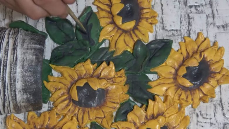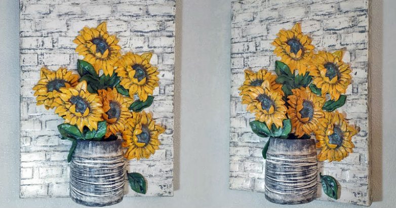 От этого панно нельзя отвести глаз! Из шпаклевки, клея и красок создать настоящее произведение искусства — это истинный талант. Удивительно сказочный, очень красивый и по-летнему солнечный декор — панно с подсолнухами — подойдёт для декора любой комнаты.