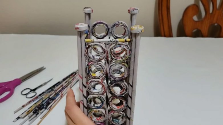 Газетные трубочки остаются по-прежнему популярными в кругах мастериц. Это не только дешевый, но ещё и податливый материал для творчества. Например, из газетных трубочек вы можете сделать эту удивительную вазу для декора любой комнаты. Только посмотрите, насколько это просто!