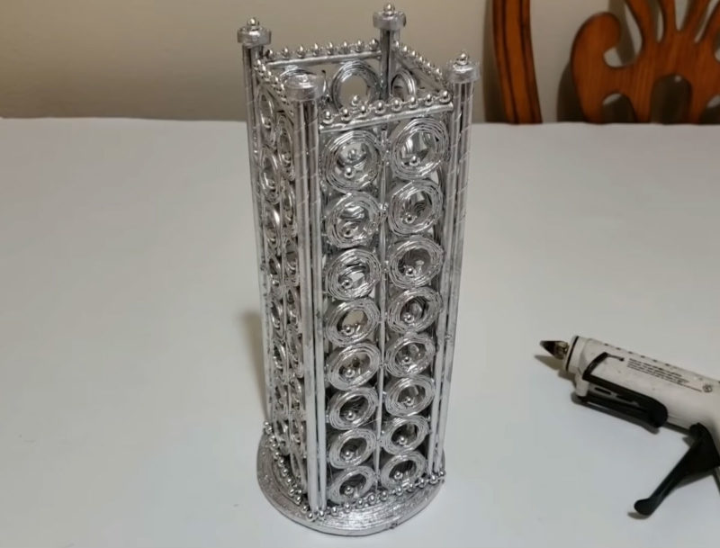 Осталось только покрасить поделку. Удобно делать это при помощи аэрозольной краски, например, серебряной или золотой.