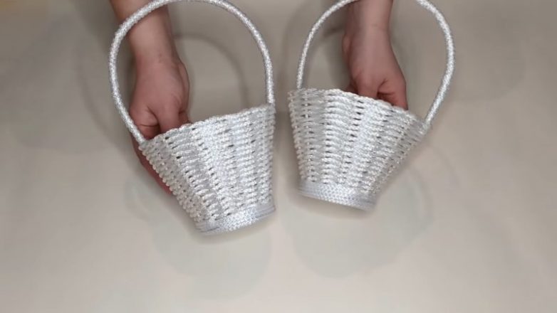 Исключительно простая и приятная работа, а результат — просто восхитителен: это нежная белоснежная корзинка для цветов, фруктов, конфет, пасхальных яиц, подарков и т. д. Обязательно попробуйте сделать чудесную верёвочную корзинку своими руками!