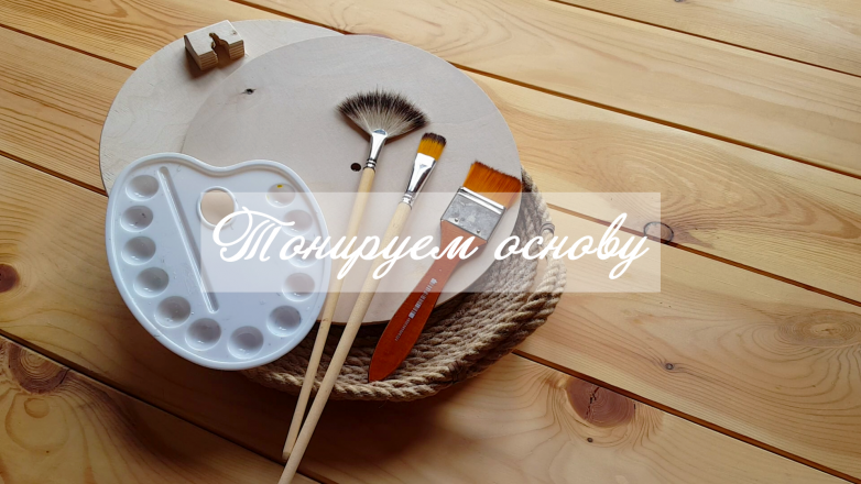Перед нанесением рисунка на дерево, я тонирую заготовку для часов белой акриловой краской. Для того, что бы рисунок смотрелся ярче.