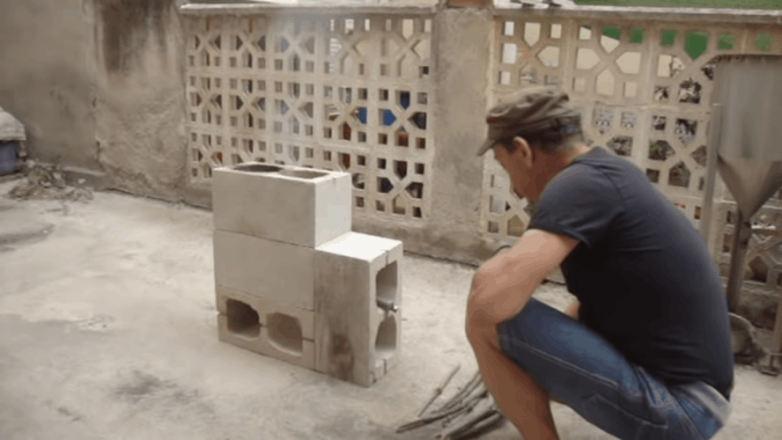 Имея в арсенале всего 4 шлакоблока, можно быстро соорудить удобную уличную печь. При всей своей примитивности у конструкции масса достоинств.
