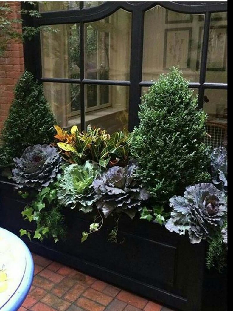 Если ты придерживаешься определенного стиля, то лучше всего выбрать такие растения, которые своей формой или цветом будут лучше всего гармонировать с общим обликом здания. Хотя не факт, что они смогут выжить на солнцепеке.