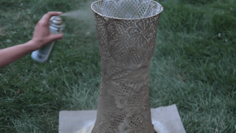 Покрываем стойку подходящей аэрозольной краской с эффектом металлика и даем полностью высохнуть.