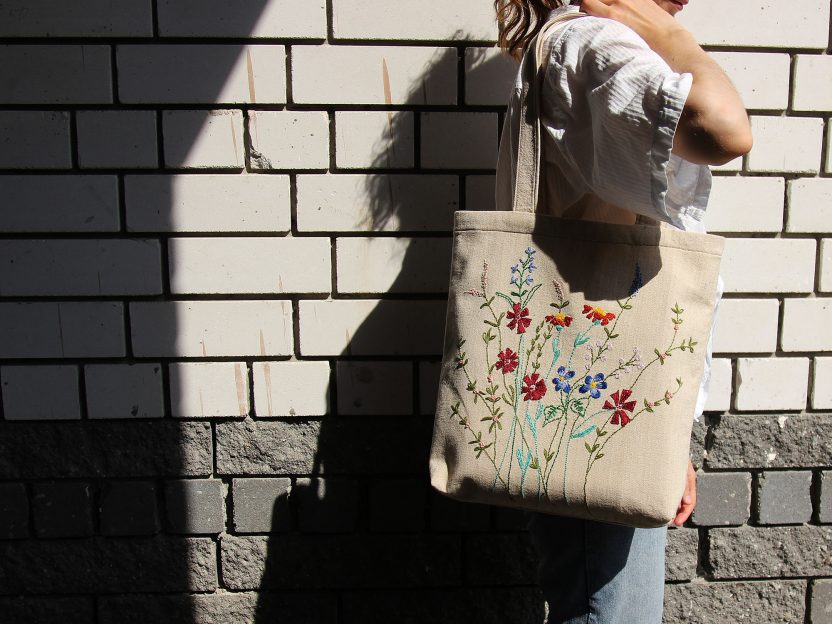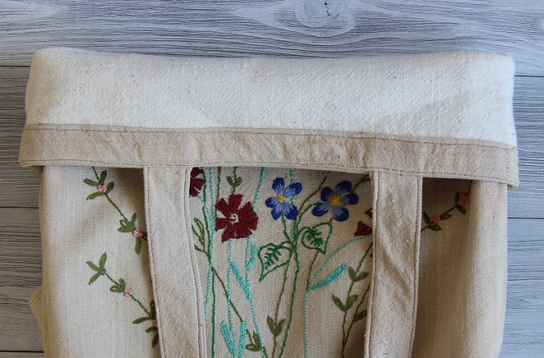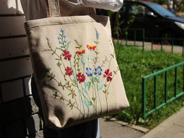 Предлагаем вам сшить сумку-шоппер из хлопковой ткани и украсить ее цветочной вышивкой!