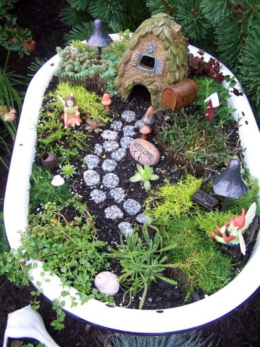 Маленький сказочный садик — будь то волшебная страна, устроенная в старой чашке, или целое царство, занимающее приличную часть приусадебного участка — довольно милое зрелище и предмет для гордости. А уж сколько радости он принесет детишкам!