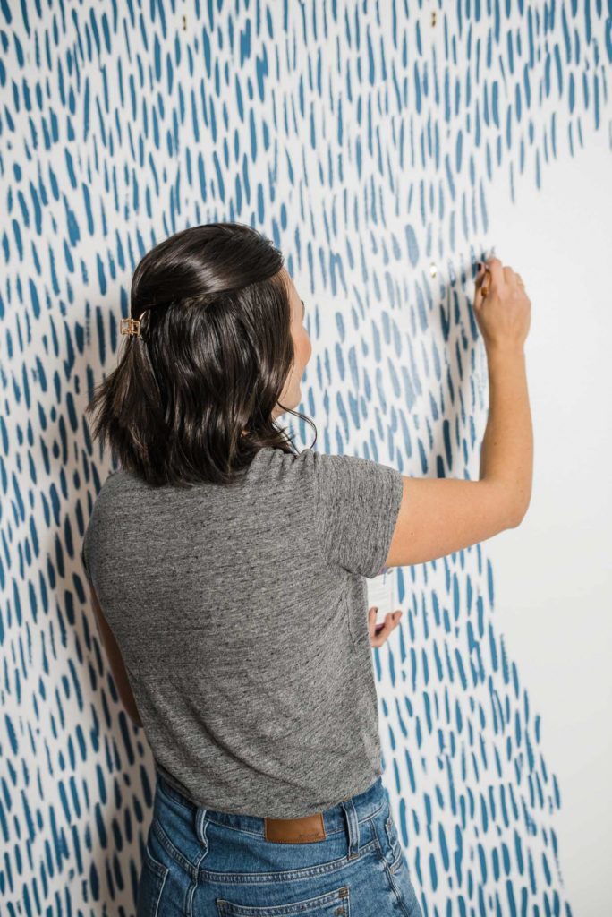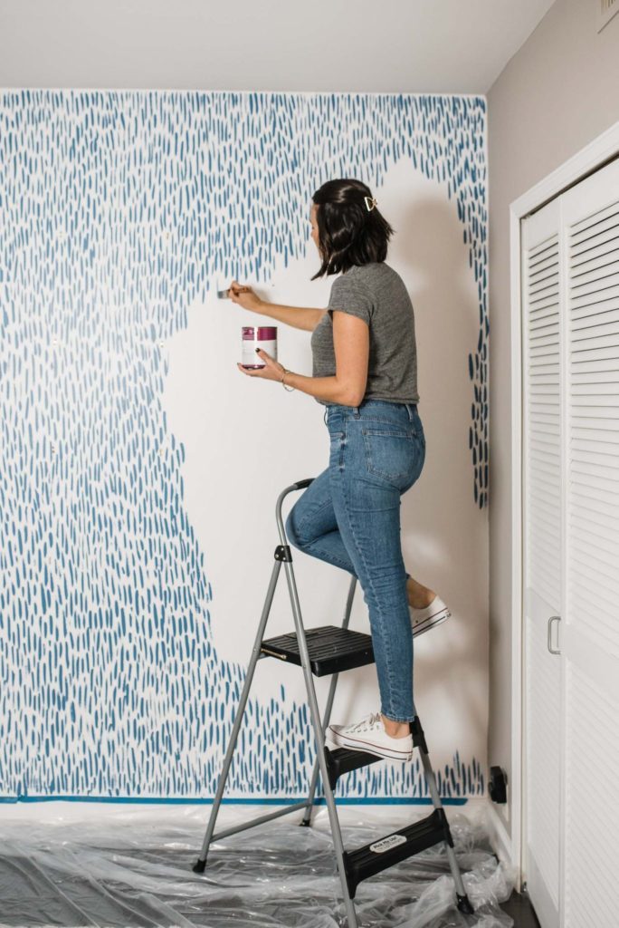 Следующий шаг — нанесение хаотичных мазков на заранее подготовленную, выбеленную и ровную стену. Это увлекательно и совсем не сложно! Важный нюанс: здесь практически невозможно напортачить и что-либо испортить! Даже если некоторые мазки будут ярче других, это только придаст стене выразительность, естественность и оригинальность.