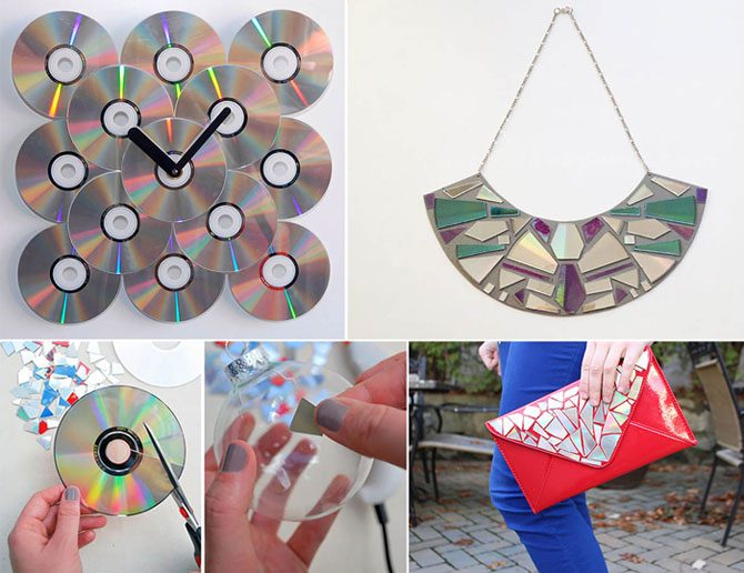 Кто бы мог подумать, что из обычных CD-дисков можно сделать столько интересных вещей! Если диски разрезать ножницами на множество мелких кусочков – получится подобие мозаики, которой легко декорировать всё, что угодно. В нашем обзоре собрано 15 идей, среди которых каждый подберёт себе что-то по вкусу.