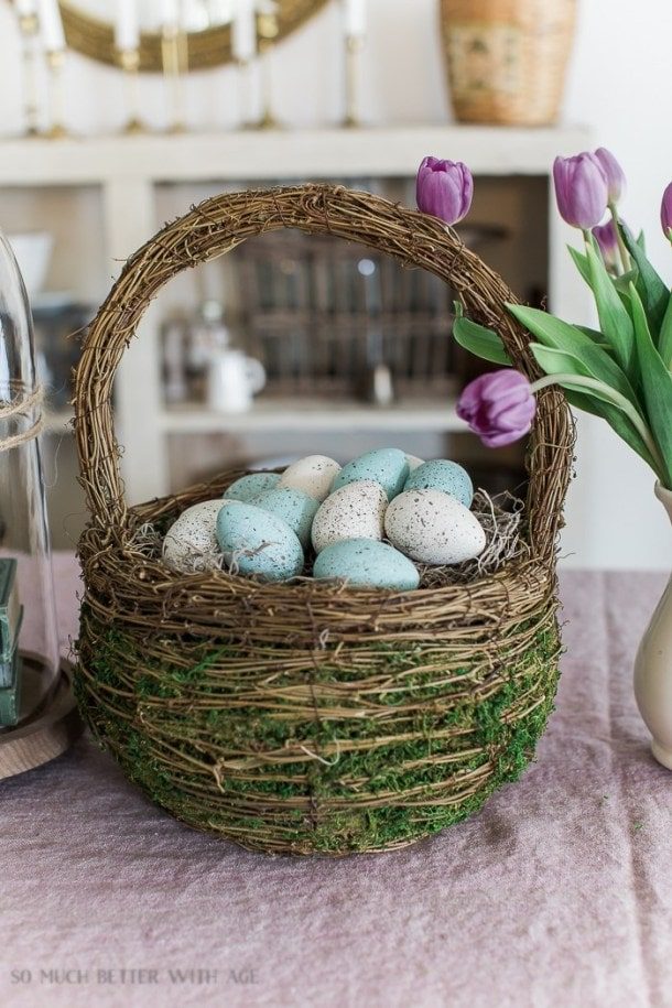 Пасхальные плетеные корзины, наполненные яйцами, прекрасно дополнят декор праздничного стола.
