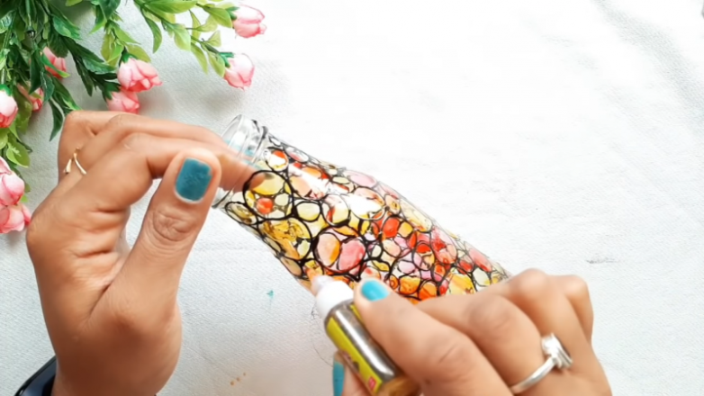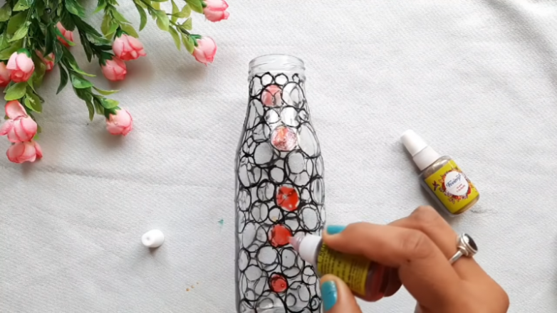 Украсить бутылки можно красками, причём совершенно любым узором!