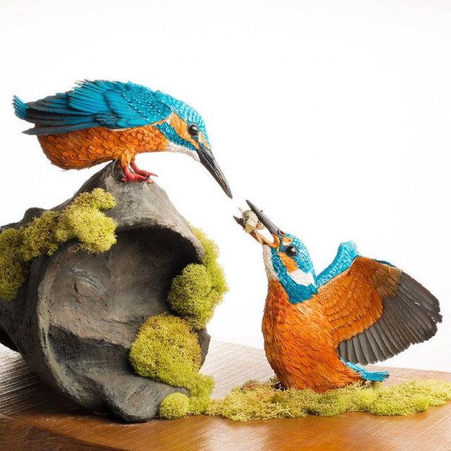 Реалистичные бумажные скульптуры птиц