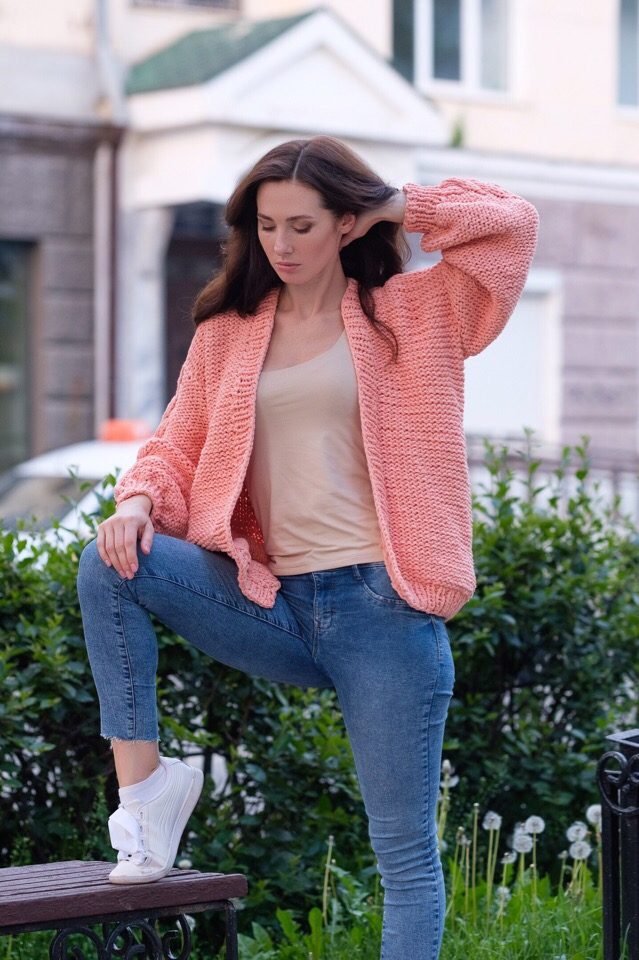 Такой кардиган можно стирать в машинке. При носке он несколько растягивается, но после стирки садится и принимает первоначальный вид.