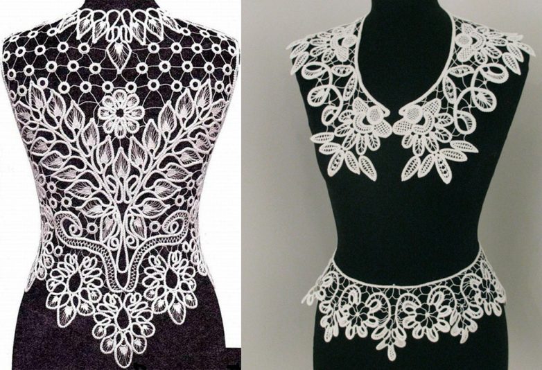 Лучше всего данный вид кружева выглядит на текстиле: салфетках, скатертях, шторах. Но можно применить его и при создании одежды: шалей, воротничков, свадебных платьев других изысканных вещиц.