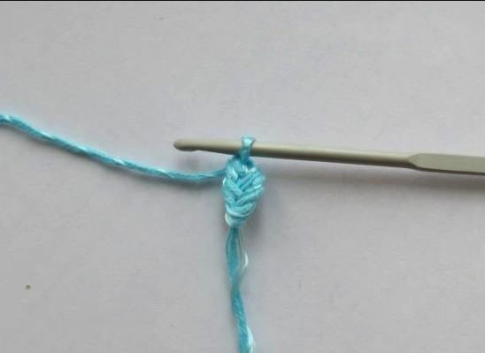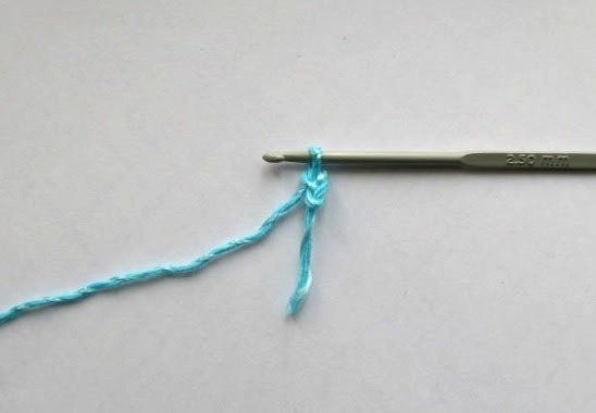 Вяжем одну воздушную петлю, крючок вводим в поперечную нить предыдущего узелка, подхватываем нить и вытягиваем из петли