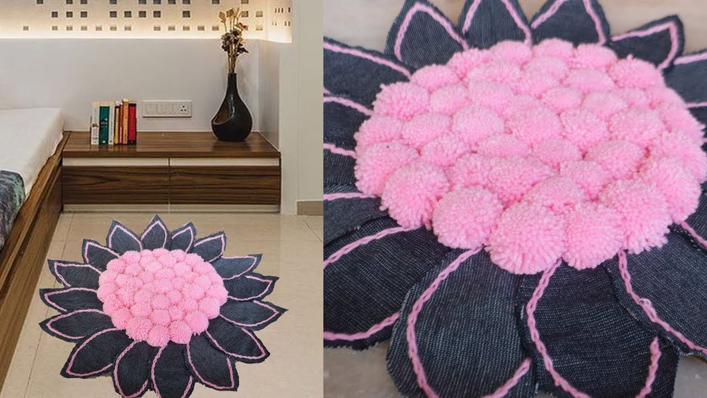 Интересный внешне, практичный прикроватный коврик легко сделать имея немного подходящей пряжи и старые джинсы. Техника предельно проста. Освоив ее можно создавать различные элементы интерьерного декора: от салфеток до настенных панно.