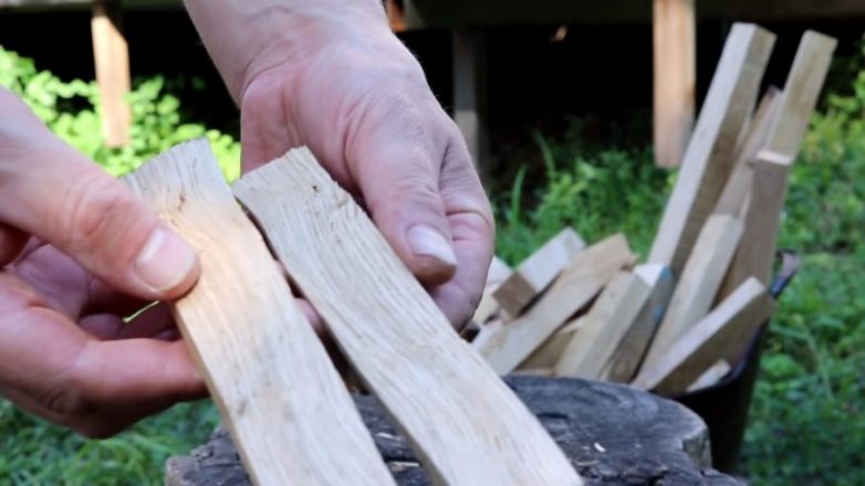 Для декора потребовалось взять колотую древесину. Подойдет практически любая, кроме сосны (если планируете выявить цвет дерева дальше). Именно колотые доски обладают этой гармоничной и естественной текстурой дерева.