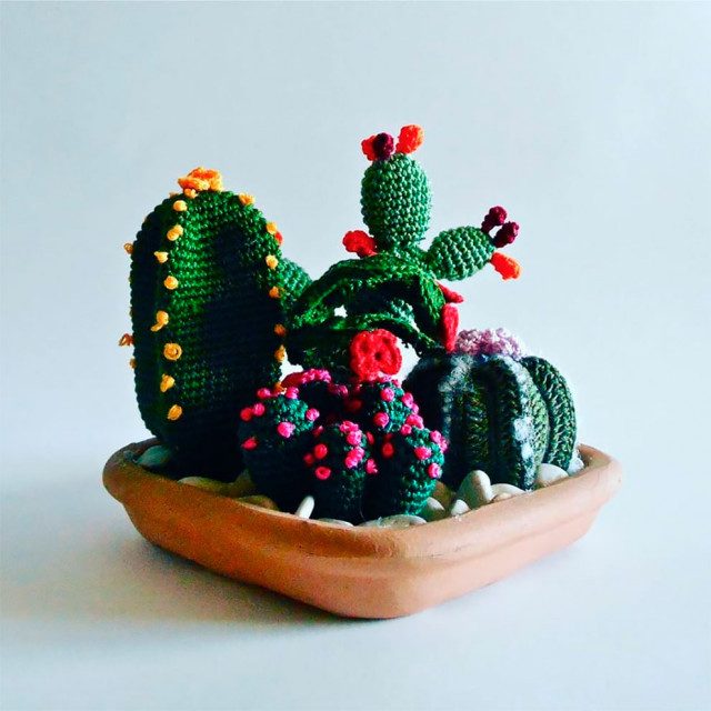 Среди подводных обитателей, связанных из пряжи, есть и разноцветные рыбки, и розовые медузы, и синий осьминог с оранжевыми кораллами, и крошечная черепаха с морскими коньками, и розовые крабы, и зелёные водоросли…