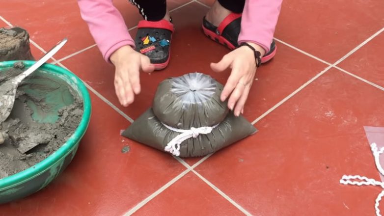 Оригинальная идея из цемента и пластикового пакета