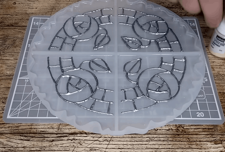 Наносим контур на застывшую эпоксидку в соответствии с выбранным рисунком.