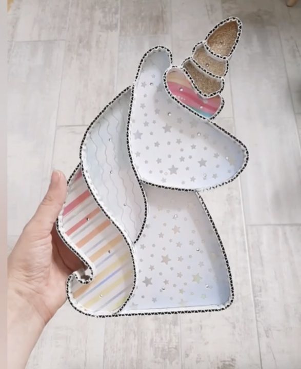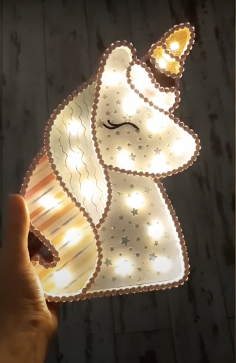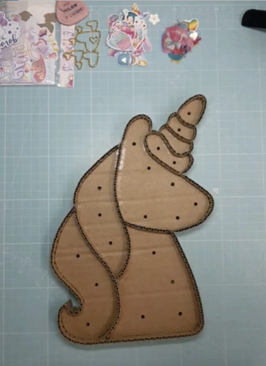 Из картона сделайте основу для будущего светильника по шаблону. Можно использовать любой вариант. В данном случае это единорог.