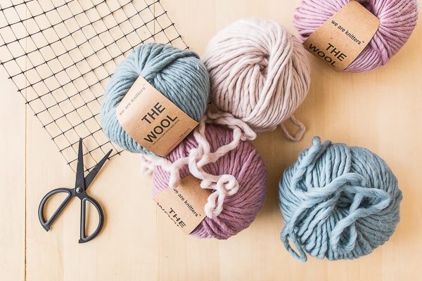 толстая шерстяная пряжа нескольких цветов;