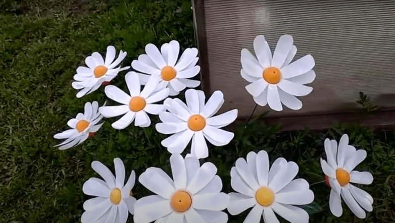 А ниже вы можете посмотреть видео о том, как превратить белые пластиковые бутылки в такие ромашки.