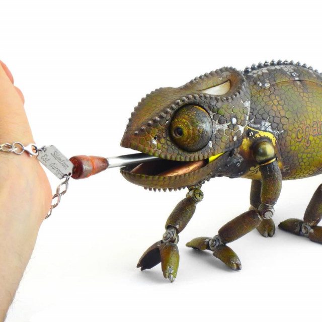 Российский художник собирает сочленённые скульптуры самых различных животных в стиле стимпанк, которые можно «оживить», придав им разные позы.