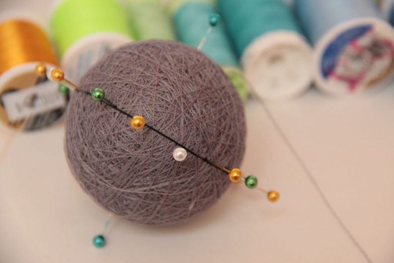Для основы можно использовать различные материалы, а затем наматывать сверху нитки. Также можно взять готовый шар из пенопласта: такой шар будет идеально ровной формы. Далее уже можно делать основу из нижнего слоя ниток, а затем создавать разметку для выбранного рисунка. При создании вышивки можно использовать нитки мулине, а также любые другие нитки для шитья или вышивания, сейчас цветовая гамма очень широка, можно выбрать на свой вкус.Где лучше всего смотрятся такие украшения?
