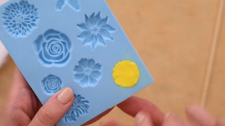 Теперь необходимо аккуратно извлечь цветок из формы. Облегчить этот процесс можно, предварительно положив формочку с вылепленным цветком на несколько минут в морозильную камеру. Также можно попробовать до начала лепки протереть молд влажной салфеткой — жидкость послужит своеобразным разделителем, и цветок вынется легче.