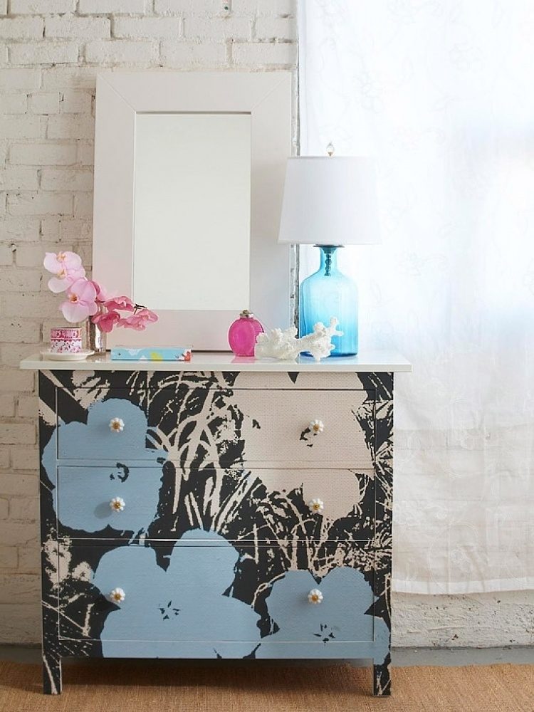 Если вам не понравилась ни одна из вышеперечисленных идей, можете купить несколько банок краски, разных цветов, и просто швырнуть их в комод. Результат может вас приятно удивить.
