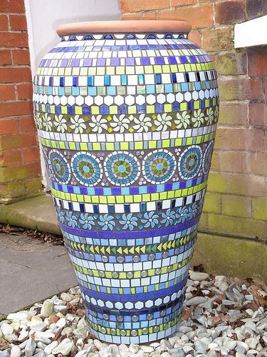 Мозаика смотрится эстетично, уникально и стильно. Разноцветная мозаика разбавит зелень растений и приукрасит сад и огород. Скамейки, дорожки, цветочные горшки и многое другое можно украсить, используя, например, битую плитку, стекло, цветные камни и не только.