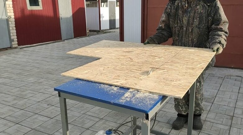 С начала делаем разметку при помощи рулетки и карандаша, затем выпиливаем подходящий отрезок ЛДПС или фанеры, у кого что есть.