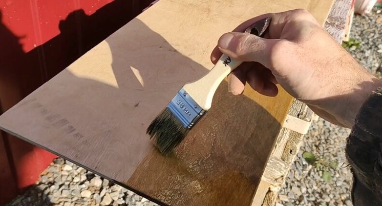 Далее можно покрыть его лаком или покрасить, чтобы защитить от воздействия влаги и солнца. Или оставить как есть, каждый решает сам. Я, к примеру, покрыл его яхтным лаком, так как он очень устойчив к воздействию окружающей среды.