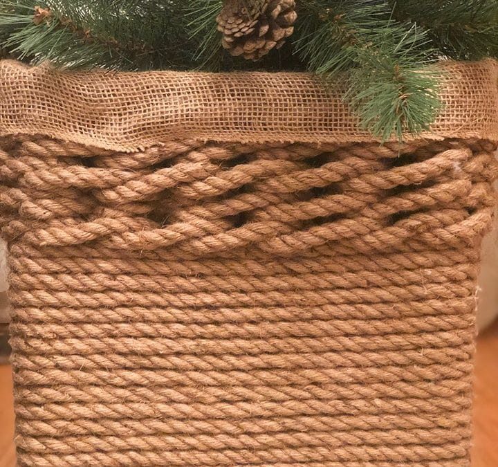 Теперь, когда вся коробка оклеена, сделайте несложный узор. Накиньте верёвку на палку, полностью оберните, то же самое повторите со следующей. Повторяйте по кругу, пока не заполните всё.