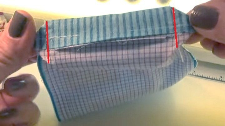 Чтобы сформировать у домика дно, совместите боковые швы с нижним и отстрочите нижние углы.