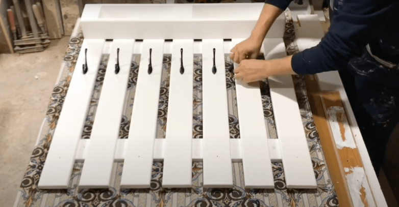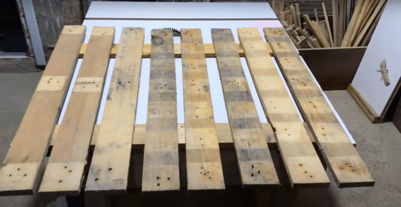 lЕсли вам досталась паллета, так сказать, не первой свежести, ее можно разобрать и придать получившемуся материалу ухоженный вид: обрезать, подравнять и зашлифовать. После «косметических процедур» собираем снова все детали вместе так, чтобы они напоминали заборчик.