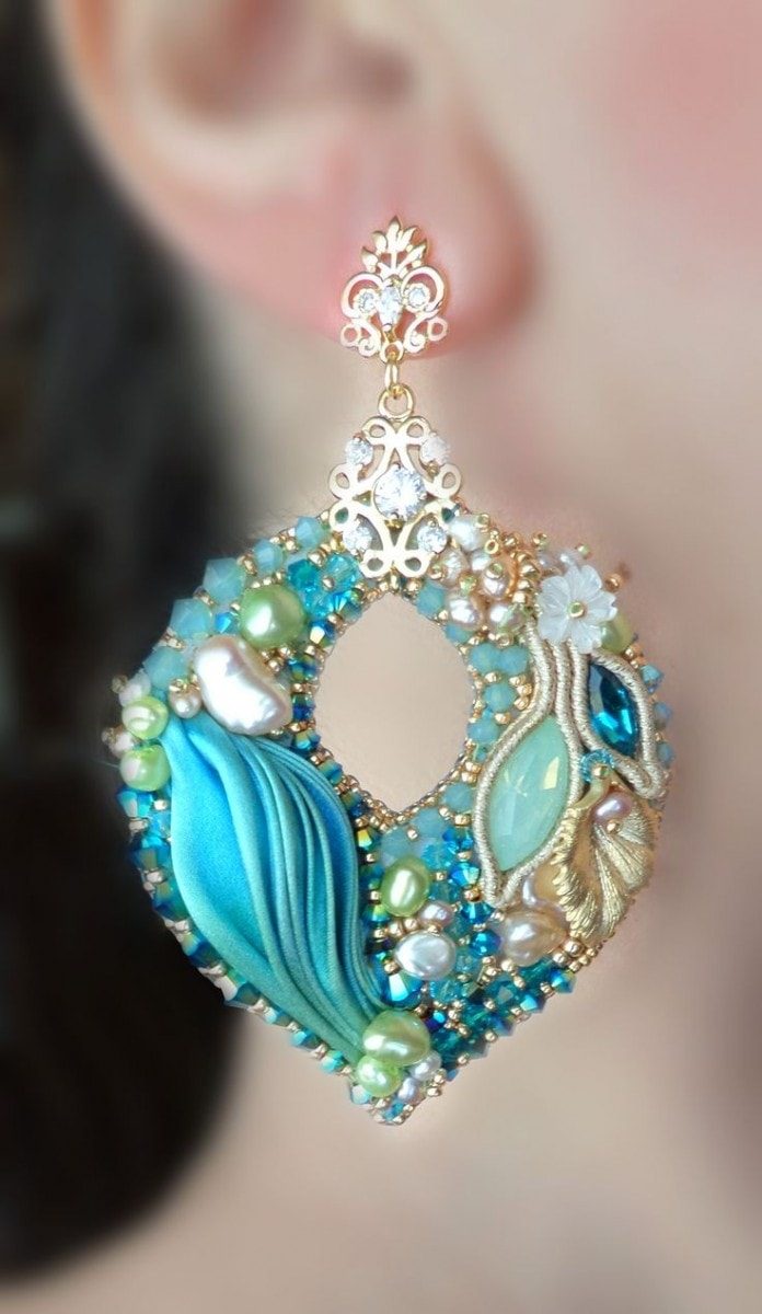 Морская тематика идеально подходит для серег с элементами шибори, образовывающая волну ткань многократно усиливает эффект.
