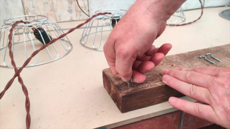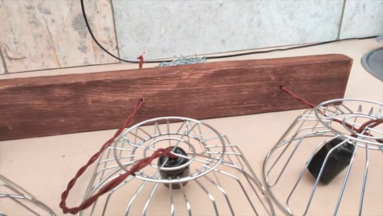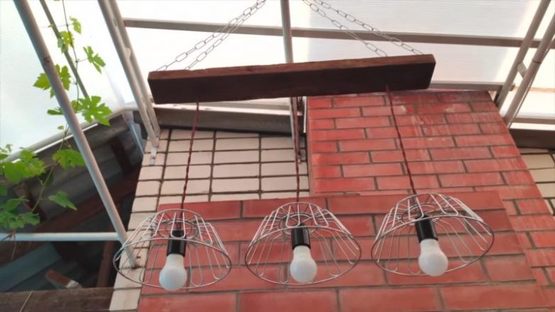 Цепи закрепить на крючки и подвесить. Подключить питание. Дизайнерская брутальная люстра для улицы готова!