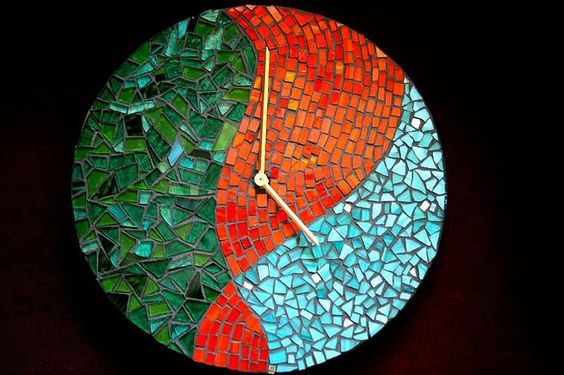 Сделать это можно при помощи мозаики. Использовать с этой целью можно все: от осколков фарфора или кафеля до кабошонов и камушков. Главное, чтобы понравился конечный результат. Подобрать мозаику можно в полном соответствии со стилем помещения. Никто не помешает наложить мозаику непосредственно на циферблат. Можно поступить и иначе: просто сделать мозаичную окантовку.